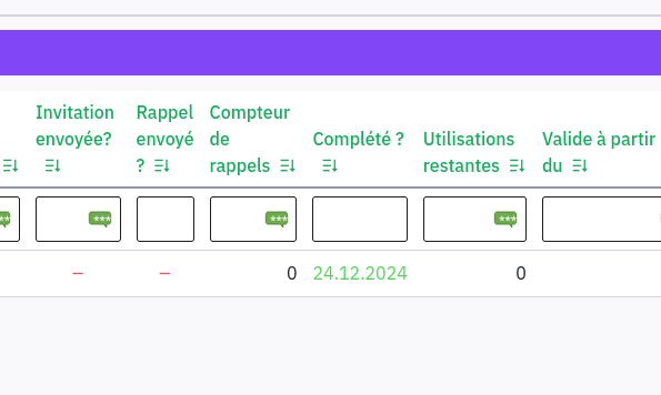 Tu as essayé sur un token de test ?Bonjour et meilleurs voeux. Eh bien non, la colonne Complété ne se remplit pas .