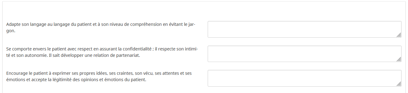Elle souhaiterait également qu'il y ait une zone de commentaire libre pour les réponses sélectionnées.