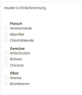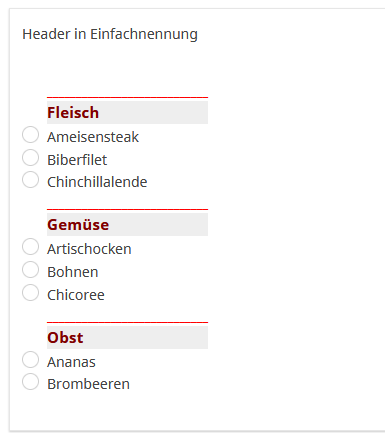 A priori, il n'est pas possible d'utiliser des séparateurs pour créer des catégories de réponse avec des boutons radio.