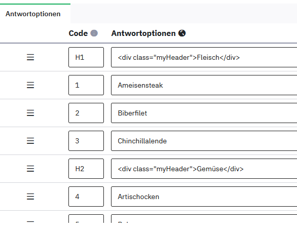 Si possible, j'aimerais utiliser certaines options de réponse pour les utiliser comme catégories en leur retirant/cachant leur bouton radio.