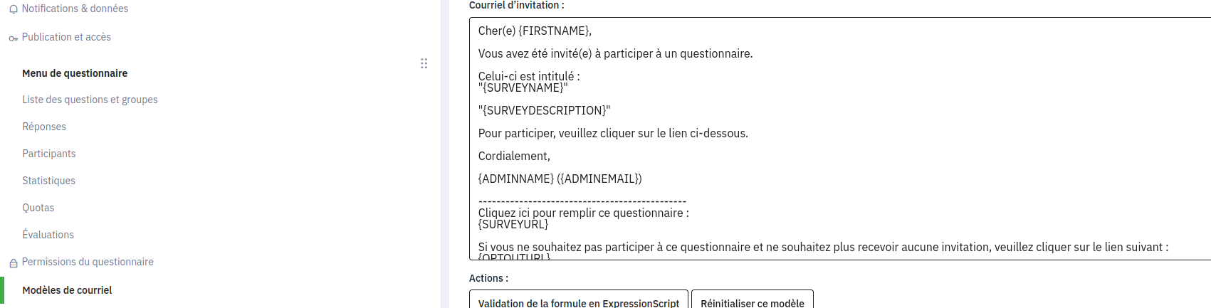 Votre version de LimeSurvey : Version de votre LimeSurvey : [voir en bas à droite de l'écran d'administration de votre LimeSurvey]. 6.16.14