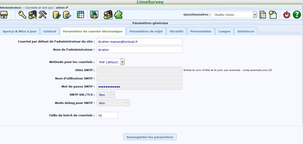 Limesurvey avec Wamp c'est pour faire des tests, une fois que tu veux démarrer un sondage, il faut installer Limesurvey sur un serveur relié à internet 24/24, 7 jours sur 7 ?