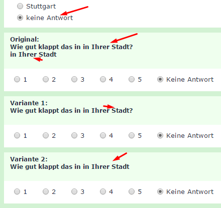 In der Frage_2 soll dann natürlich nicht "Wie gut klappt das in keine Antwort" angezeigt werden, sondern ein freier Text, wie z.B. "Wie gut klappt das in der Stadt, in der sie wohnen?