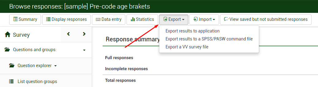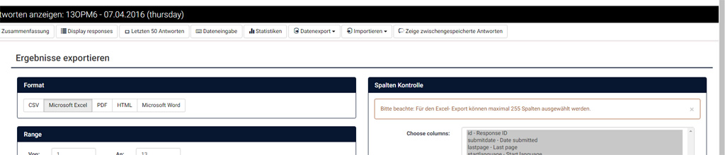 Man könnte natürlich auch selbst ein bisschen in LS rumschauen. Gibt es. Unter "Responses" bekommst du eine Liste von allen Antworten. Da kannst du dann auch sehen, was jeder einzelne geantwortet hat.Noch ne andere Frage, kann ich mir über LS direkt (einzelne) Ergebnisse anzeigen lassen, also welcher Befragte genau was angegeben hat (sowas wie das PDFNotify, allerdings online)?