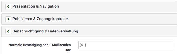 Unter Umfrage-Einstellung -> Generelle Einstellungen -> Benachrichtigung & Datenverwaltung bei "Normale Bestätigung per ..." den Code für das Textfeld der E-Mail-Eingabe eintragen (bei mir A1):