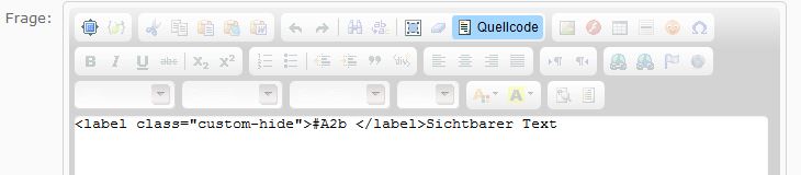 Ich würde gern vor den Fragentext einige kleine interne Vermerke einfügen (z.B. "#A2b") und den verborgen formatieren, so dass er in der Online-Version nicht sichtbar ist, ich ihn aber in der Administratorenansicht sehen kann. Das würde die Zuordnung der Fragen zum ursprünglichen Papierfragebogen erleichtern.