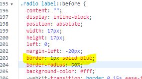 .radio label::before { border: 1px solid red; //oder blue oder yellow oder was auch immer }