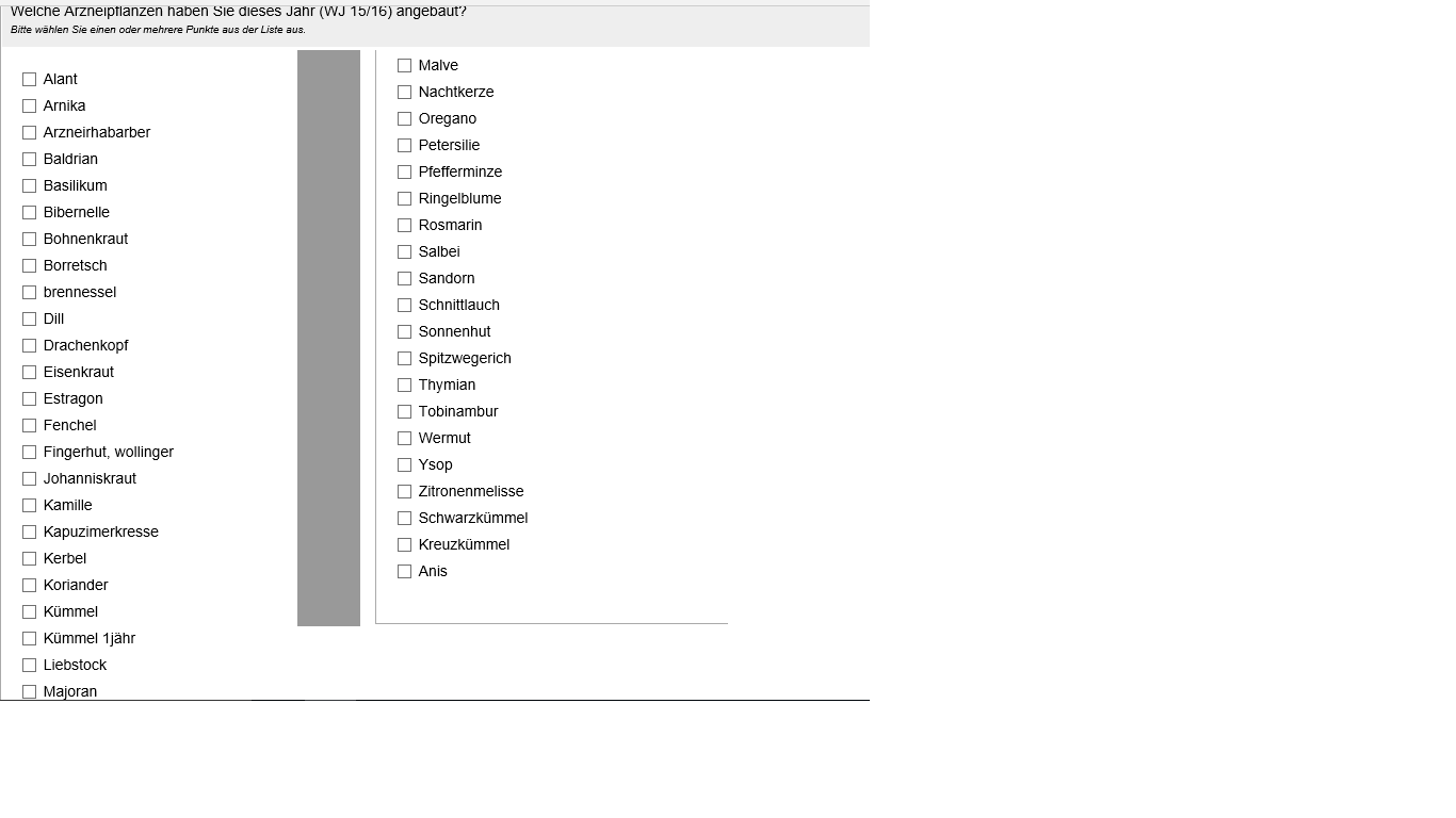 Ja Sie haben Recht, diesen Punkt mit der freien Text Eingabe habe ich auch schon bedacht und im FB geändert :) Allerdings finde ich es etwas unübersichtlich, da es sich insgesamt um 44 Kästchen handelt. Eine Möglichkeit wäre, es nebeneinander zu plazieren.... (???)