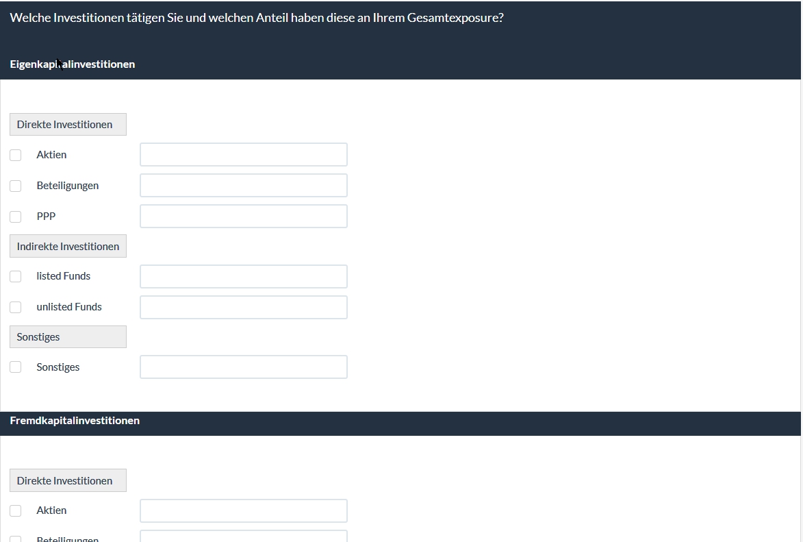 Joffm wrote: Ich würde - wie Du siehst - die Kategorien "Eigenkapitalinvestitionen, usw." in einzelne Fragen legen.