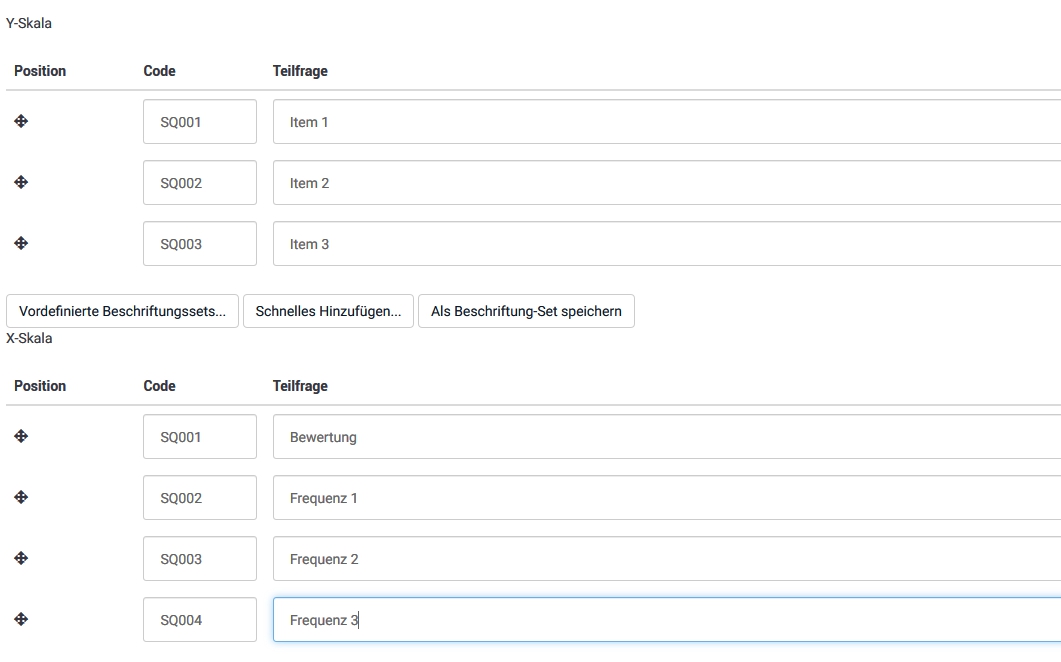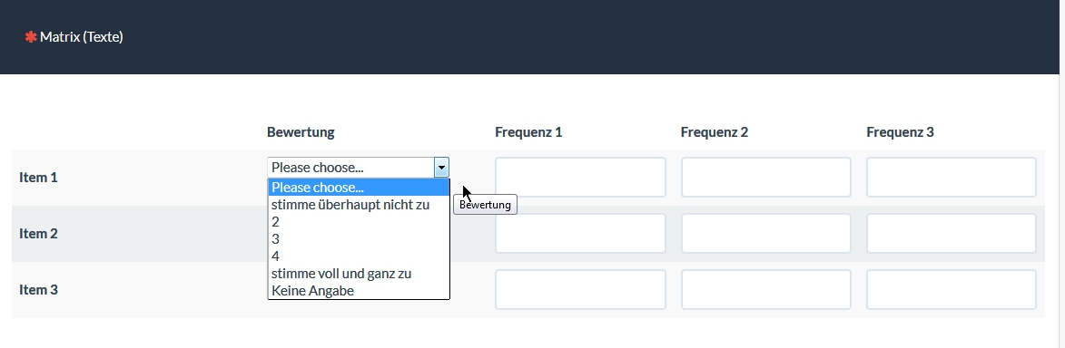 Hier gibst Du nun ein, was Du erfragst, also bei "Frequenz 1-3" entweder "Zahleingabe" oder "Nur ganze Zahlen"
