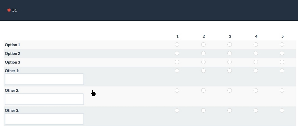 - wie könnte ich aber eine Matrix erstellen, die eben unten dieses Textfeld als Antwortmöglichkeit hat, OHNE dass die Möglichkeiten der X-Achse erscheinen?
