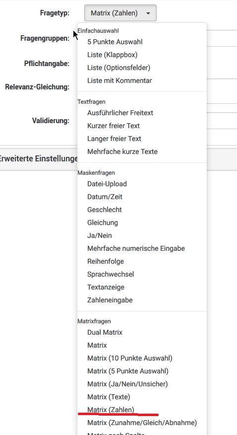 Joffm hat den richtigen Fragetyp genannt. Du kannst über die Optionen, die Nummernfelder zu Checkboxen umwandeln.mhoinke wrote: Mehrfachauswahl/Checkboxen pro Zeile machen kann anstatt Einfachauswahl/Bulletpoints