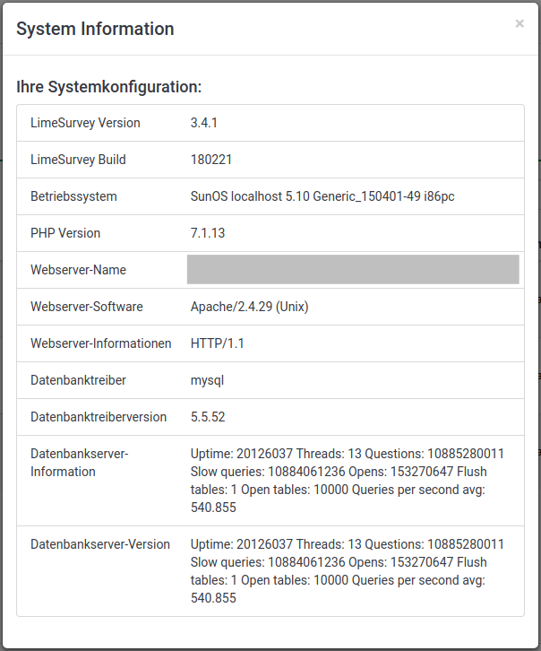 Also keine große Datenmenge. Ein Update von LS während der Befragung würde ich nicht machen. Falls es Dir möglich ist, solltest Du LimeSurvey parallel in der aktuellen Version installieren, um ein paar weitere Tests gefahrlos machen zu können.simpadic wrote: Ich versuche alle Datensätze - vollständig und unvollständige - zu exportieren. Das sind momentan n=83 und im SPSS-Export bekomme ich auch diese 83 mit plausibel scheinenden Zellinhalten.