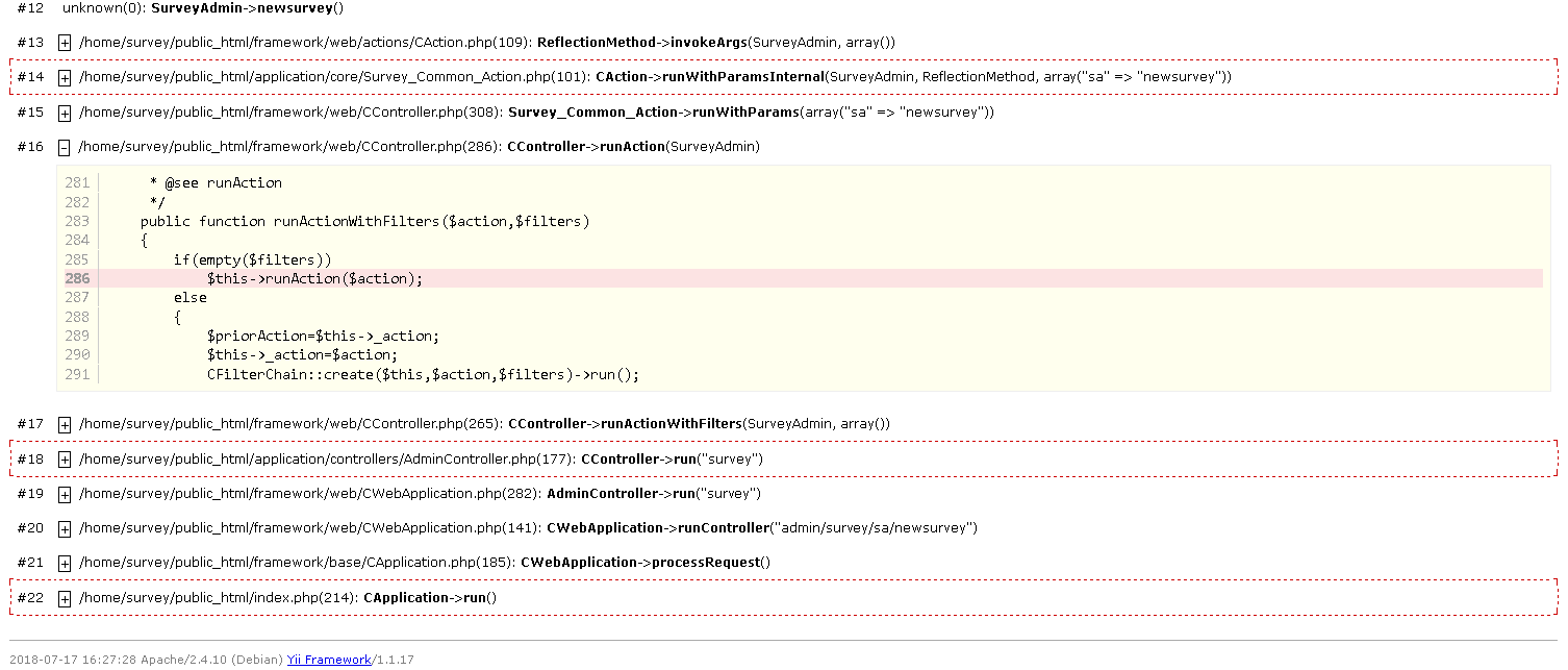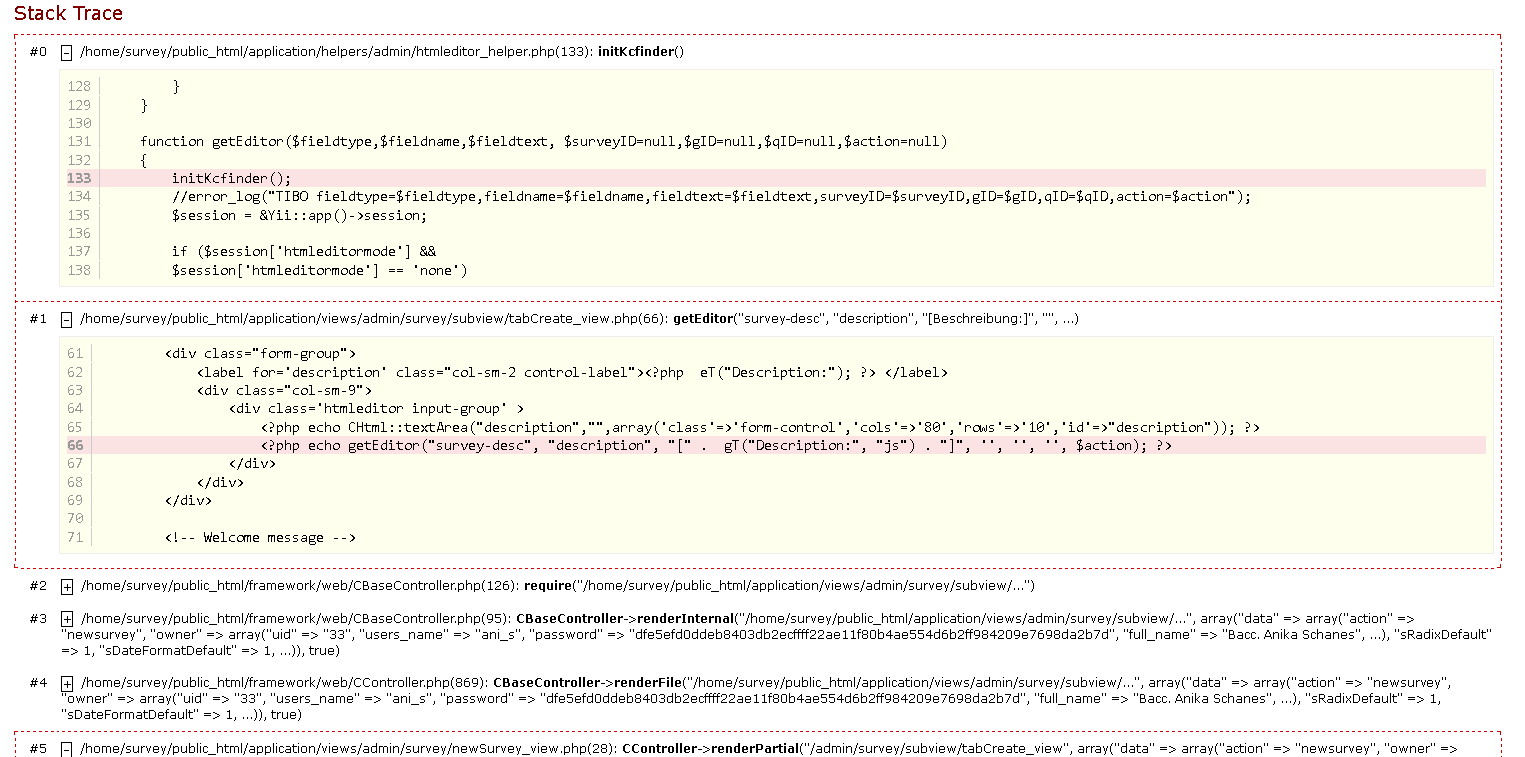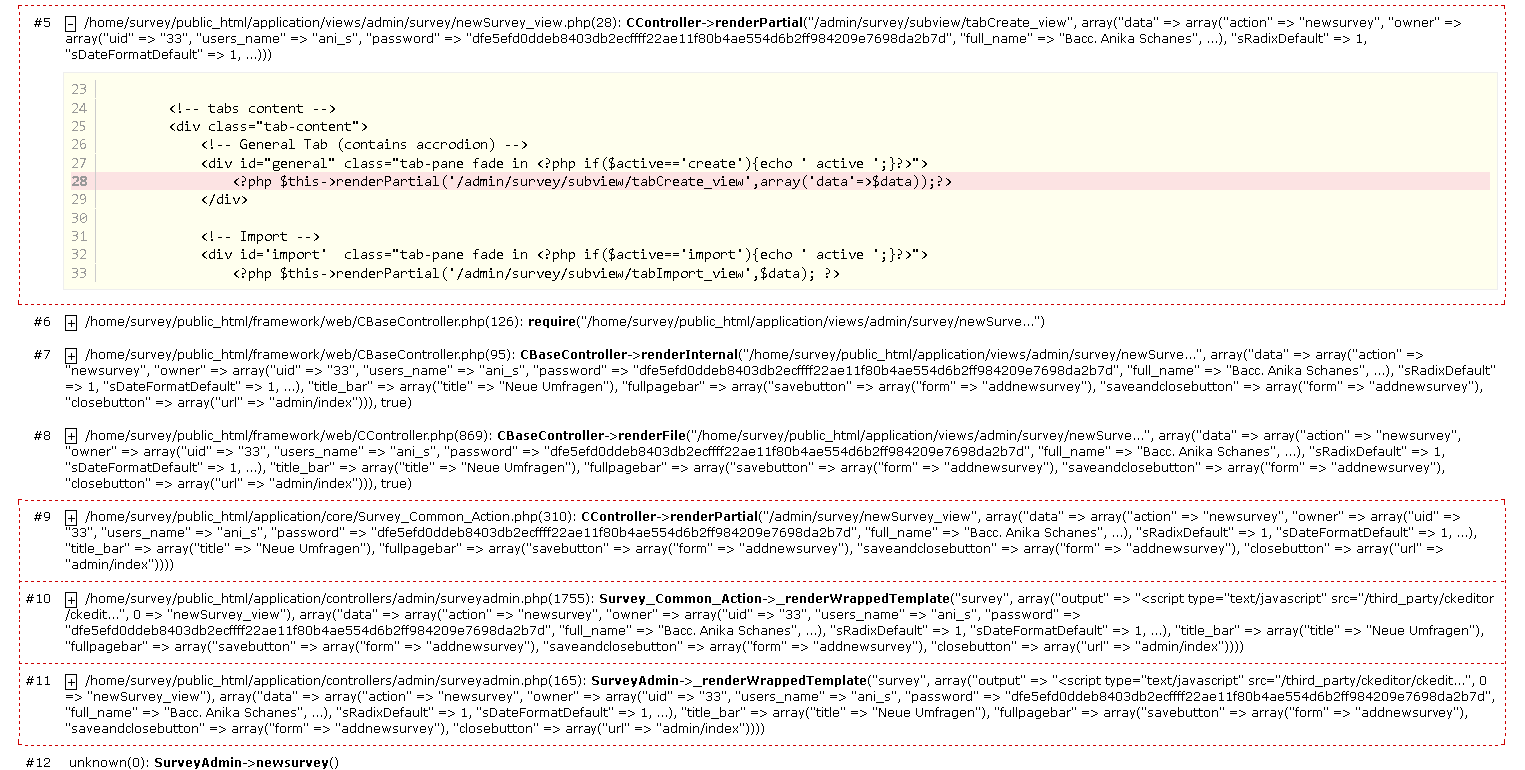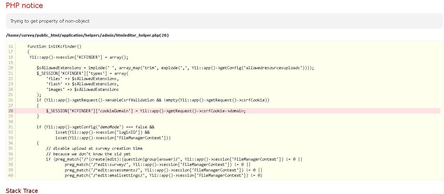 ich bekomme seit gestern andauernd diese PHP notice - Meldung. Man kann keine neue Umfrage mehr erstellen. Bei bereits erstellten Umfragen ist es nicht möglich die "Generellen Einstellung", "Bewertungen" oder "E-Mail Vorlagen" zu öffnen. Weiters können keine E-Mail Einladungen oder Erinnerungen versendet werden.