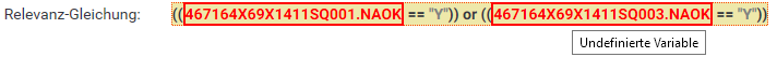 So the next day you open your survey and open question Q2 the relevance equation is displayed in red - marked as error.