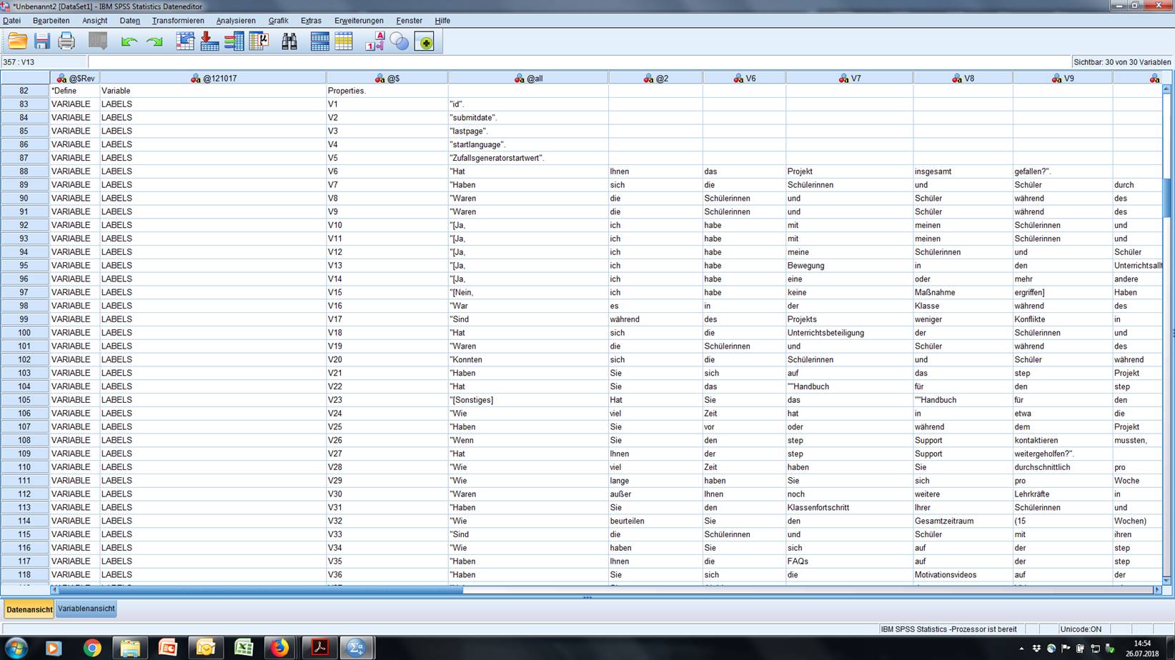 Dann erscheint in SPSS ein neues Fenster mit den importieren Daten