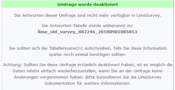 In der Datenbank sind alle deaktivierten Datentabellen Deiner Studie noch vorhanden; wie gesagt unter dem oben erklärten Namen.