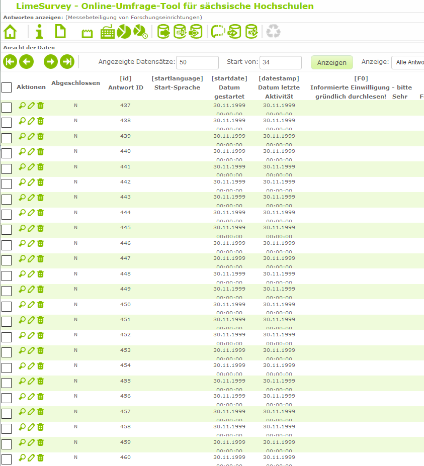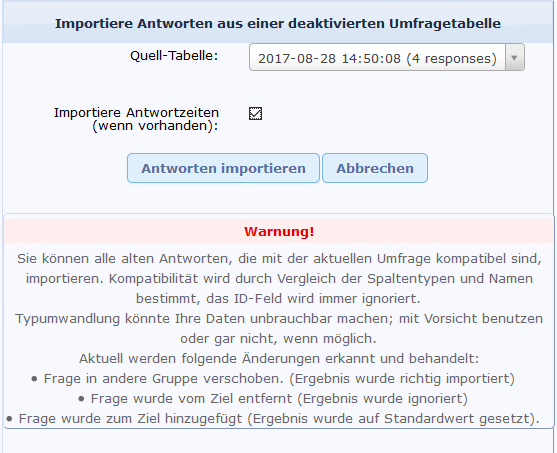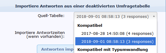 Mein heutiges Testprojekt hat also folgenden Namen "lime_old_survey_882246_20180901085813".