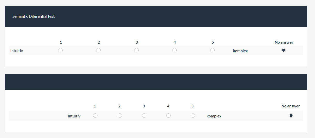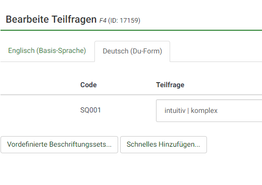 Oben eine Matrix-Frage mit selbstangelegter Skala. Danach habe ich dann getestet ob es speziell bei der 5 Punkte Matrix Probleme gibt. Offensichtlich nicht. D.h. ein Update wäre angebracht auf die neueste Version deines Branches von LS.