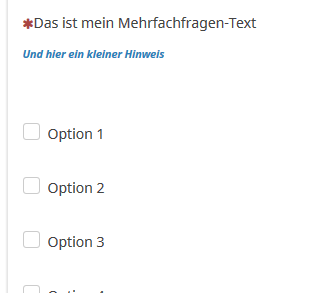Und Deinen eigenen Hinweistext schreibst Du dann in den Fragetext - mit ein bisschen Styling, um es von der eigentlichen Frage abzusetzen.
