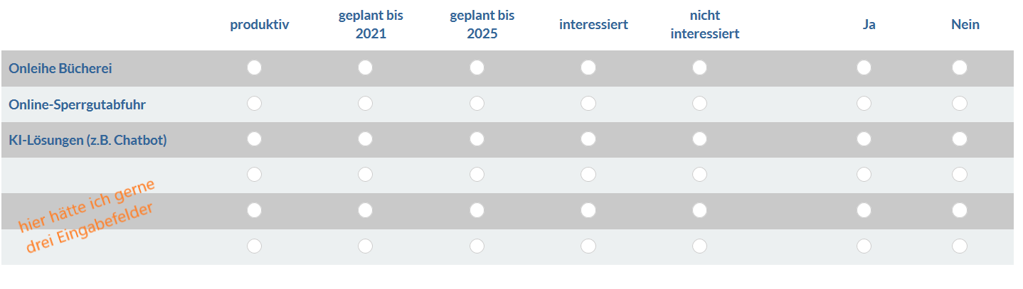 Es ist auch leichter auszuwerten, als wenn Du in jeder Deiner zusätzlichen "Sonstigen"-Zeilen