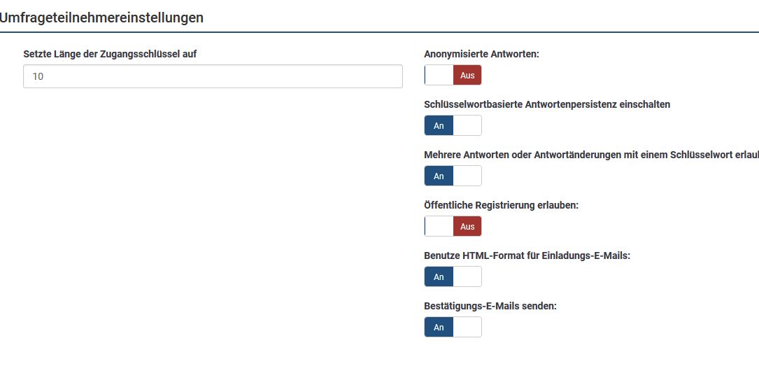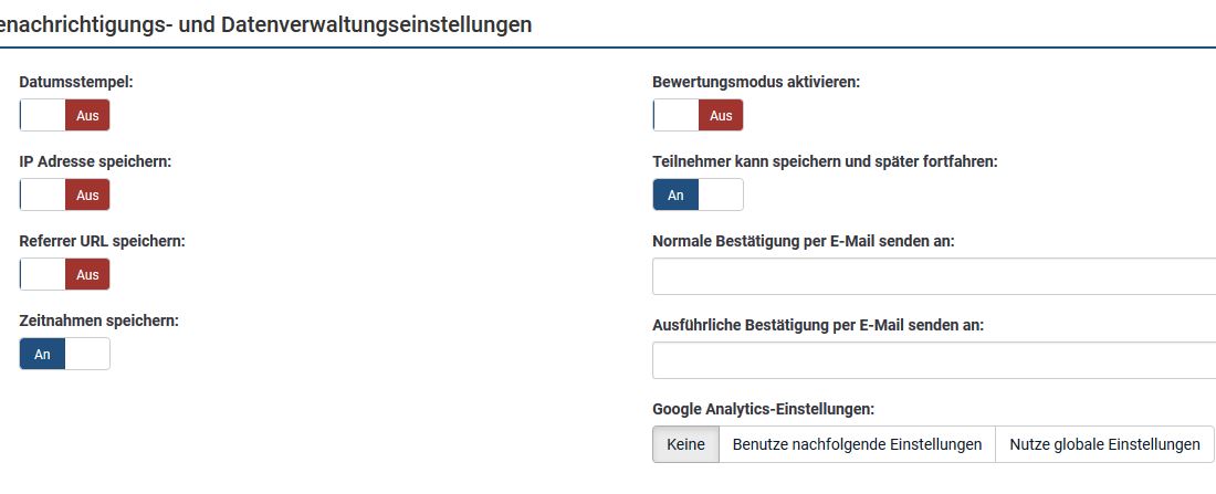 Ich möchte es zulassen, dass die Teilnehmer ihre Fragen speichern und zum späteren Zeitpunkt diese wieder bearbeiten können. Trotz notwendige Einstellung (s. Screen shoot) funktioniert das bei der Umfrage nicht.