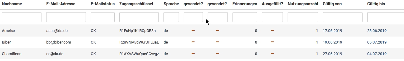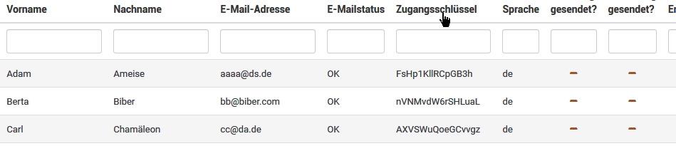 In LimeSurvey habe ich diese Option bisher nicht gefunden, sodass ich selbst Zugangsschlüssel generiert und importiert habe.