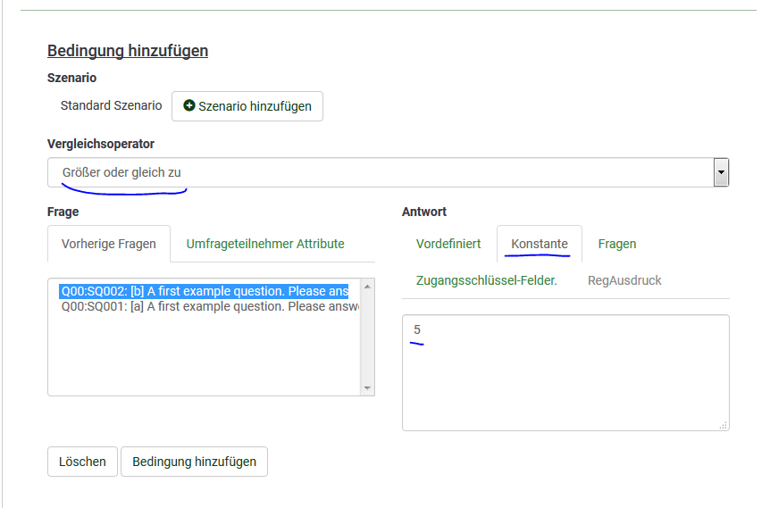 Eine Frage soll nur dann erscheinen wenn bei einer vorherigen Fragen "mehrfach nummerische Eingabe" ein bestimmter Mindestwert erreicht wird.