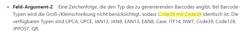 Barcode types are not case sensitive, so CODE39 is the same as Code39