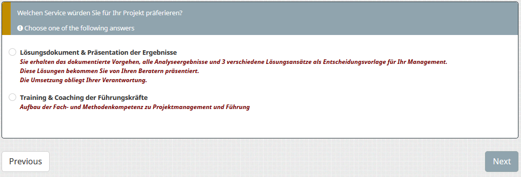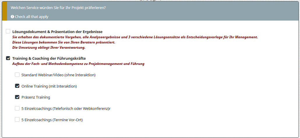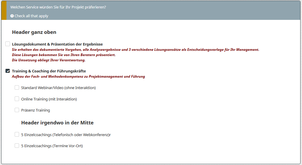 Und wie das Look and Feel der Texte kommt, siehst Du im Text der Teilfragen; hier kannst Du dann aus Herzens Lust spielen. Wie wollen ja, dass Deine Masterarbeit ein Erfolg wird.