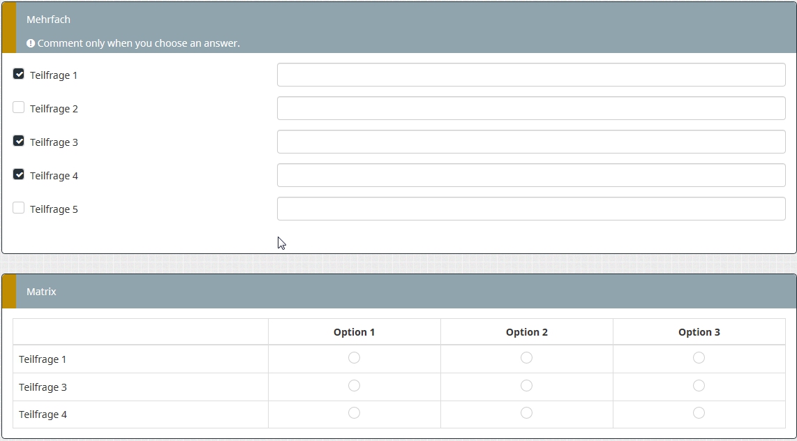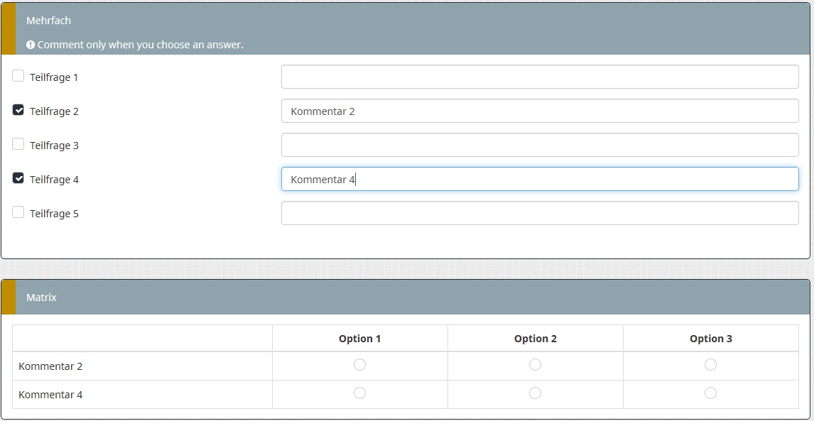 Also lautet die Relevanzgleichung für Matrix Q2, Teilfrage SQ001: !is_empty(Q1_SQ001comment)