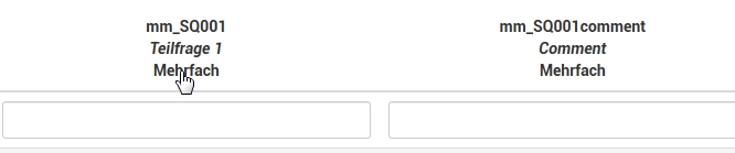 Und als Teilfragen gibst Du den Kommentar ein: {Q1_SQ001comment}