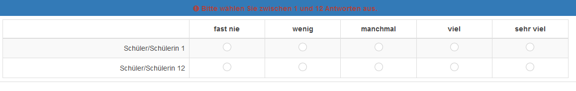 wird: !is_empty(Q1_) Und in der Matrix steht dann eben als Teilfragen-Relevanz das übliche !is_empty(Q1_SQ001), usw. Und als Text der Teilfrage {Q1_SQ001} Joffm Code der vorherigen Teilfrage)
