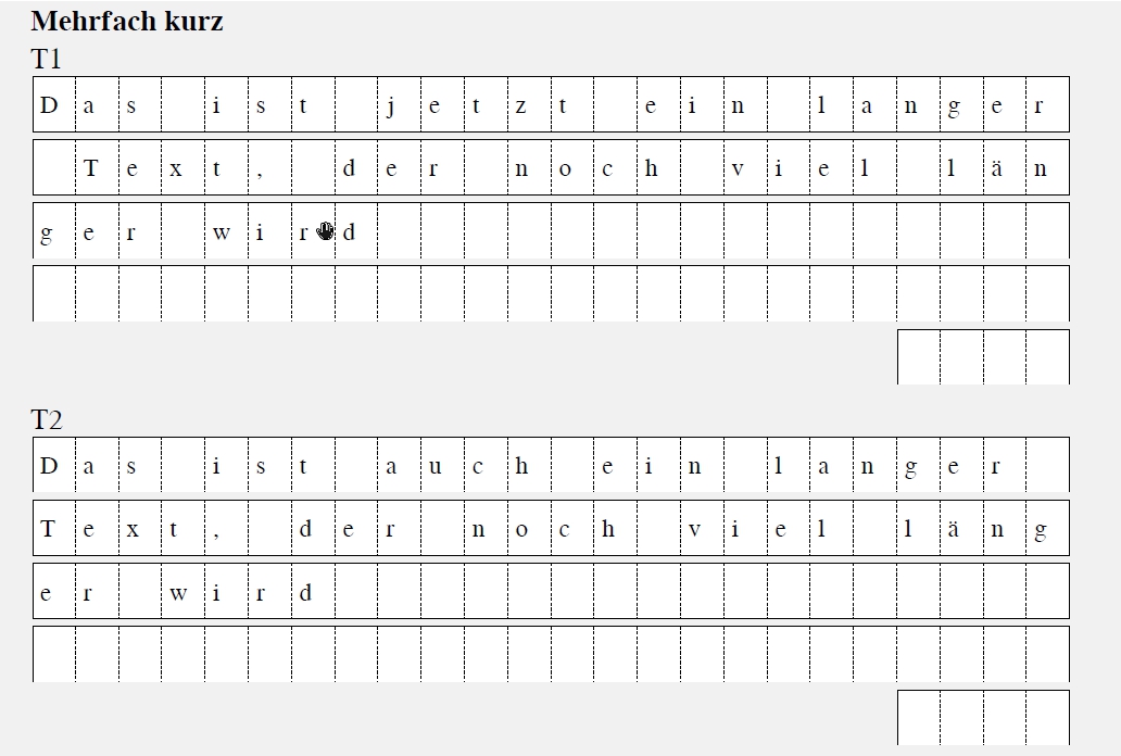 , der Entwickler, gedacht, bei diesem Typ wirklich "ein Buchstabe pro Kästchen" zu erzwingen im Gegensatz zu den anderen Texttypen.