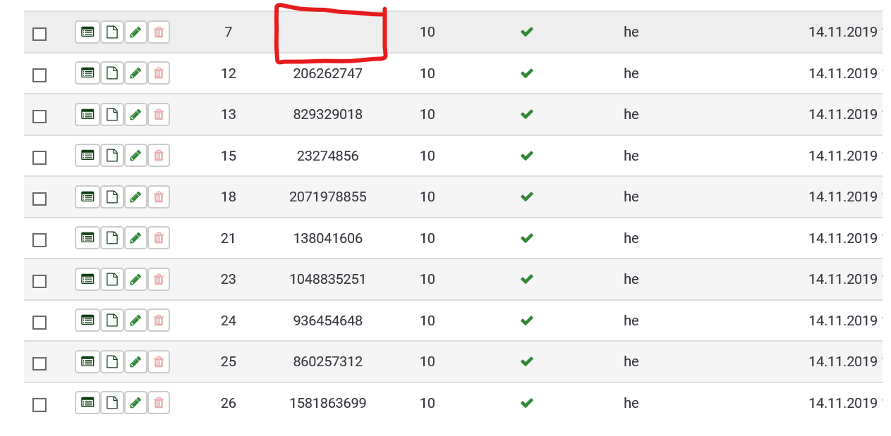 Ich habe gedacht, einfach die Antworten der einzelnen 13 Personen manuell zu bearbeiten, und habe das tatsächlich mit einem Proband schon gemacht. Das hat funktioniert, d.h. dass die Statistik dieser Person jetzt Sinn ergibt, nur hat das aber ein neues Problem verursacht, und zwar steht bei diesem Proband kein "Seed" mehr (siehe Bild 2).