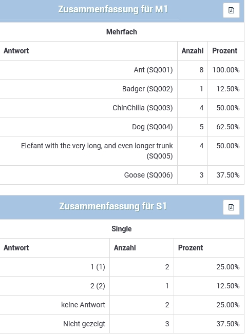 Keine Ahnung; das ist mir auch ziemlich egal, da, wie gesagt, diese Statistik für mich keinerlei Relevanz hat.LimeSurvey zeigt mir in der Statistik der Frage 2 "Keine Antwort: 22" und "nicht gezeigt=42". Wieso?