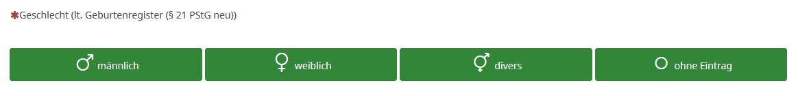 aktuell gibt es nur die Auswahl "male" "female" und "no answer" .