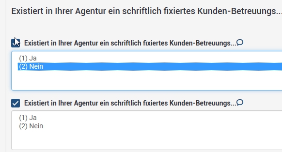 Damit werden/wurden Bedingungen festgelegt, unter denen bestimmte Fragen sichtbar waren oder nicht.