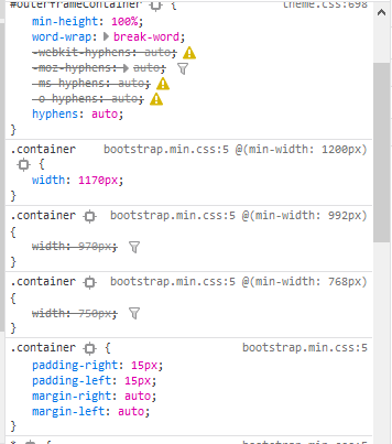 @media (min-width:768px) { .container { width:750px } } @media (min-width:992px) { .container { width:970px } } @media (min-width:1200px) { .container { width:1170px; } }