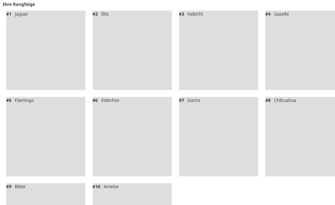Und natürlich dürfen die Rangreihen keine Pflichtfragen sein, da Du ja gestattest, nur drei Items zu rangieren.