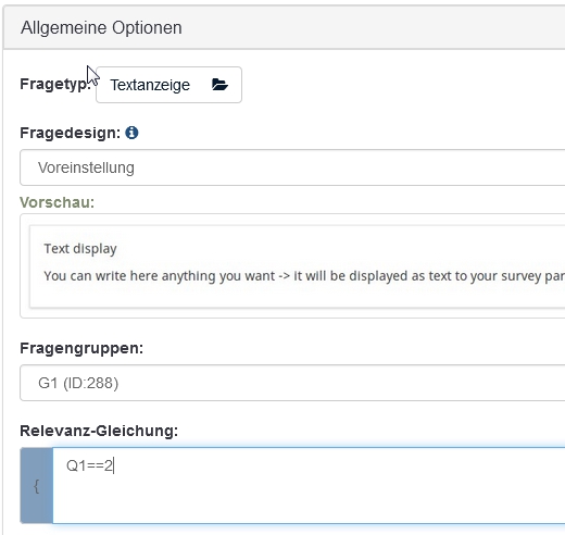Da Du leider nicht gesagt hast, mit welcher Version von LimeSurvey Du arbeitest, zeige ich es hier in der Version 3.x. (bei 2.50/2.73 sieht es wohl fast genau so aus).