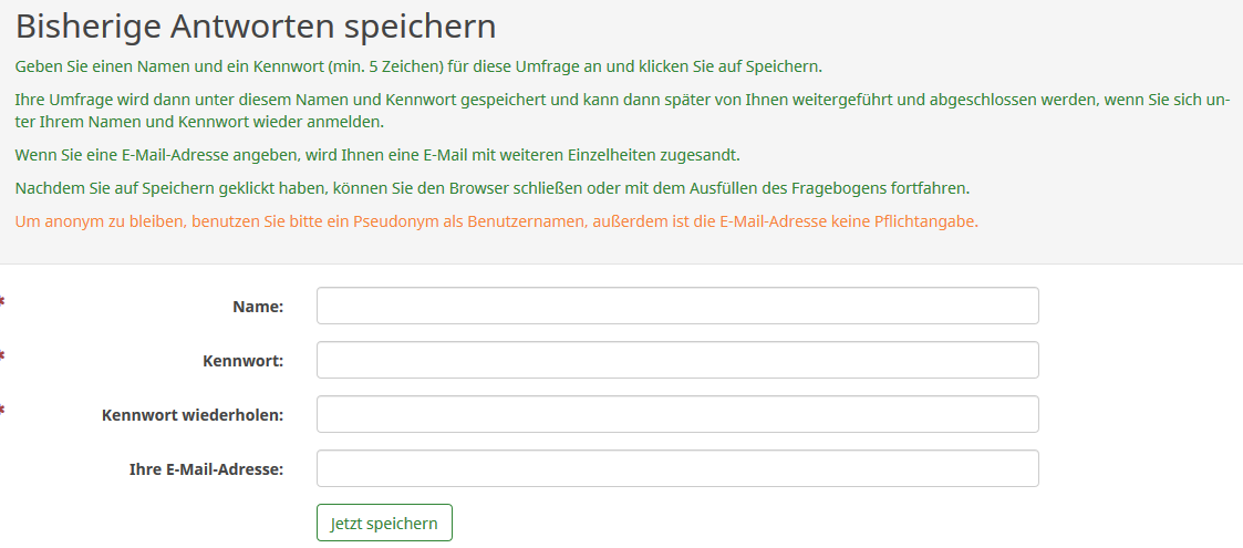 Zwischenspeichern? Das wird ja in der Anleitung gerade für anonyme Umfragen empfohlen