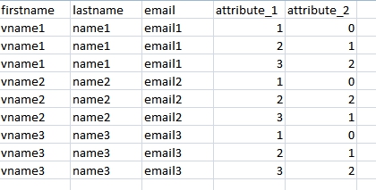 Dann könnte Deine Teilnehmer-Tabelle, die Du als *.csv hochlädst, so aussehen: