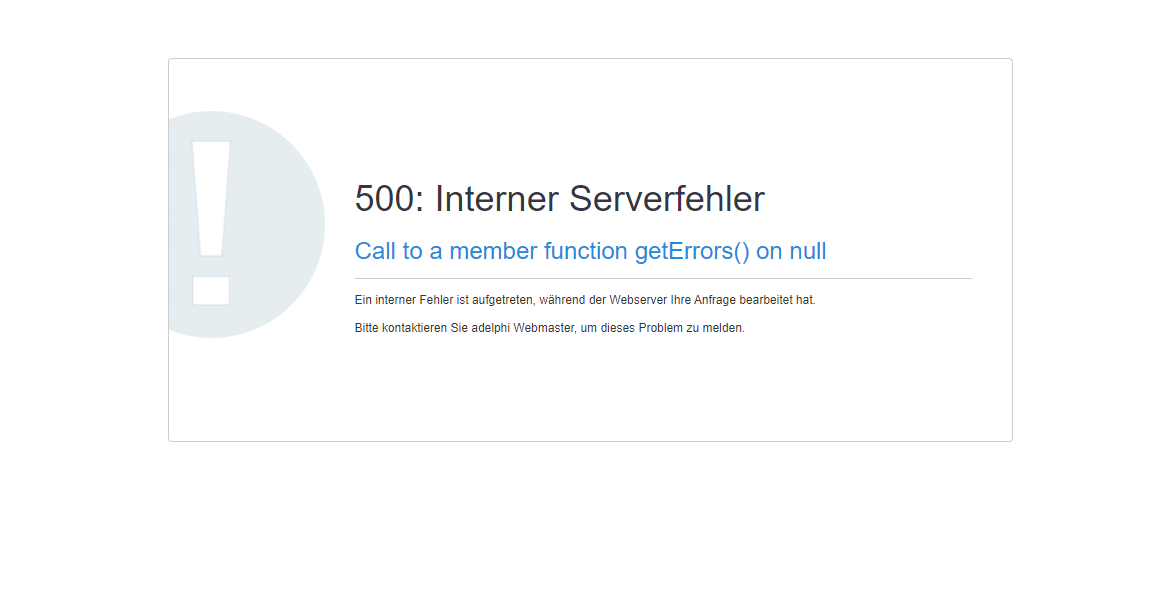 500: Interner Serverfehler Call to a member function getErrors() on null