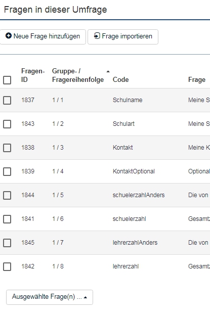Außerdem kann ich die Frage "untis" nicht löschen, weil Bedingungen noch existieren. Aber ich kann keine finden. Einen Export habe ich angehängt.