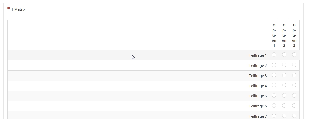Wo willst Du einen Filter setzen?Ich hatte dann auch Probleme bei der Filtersetzung. Gibt es bestimmte Zeichen die nicht in den Teilfragebezeichungen drin sein sollten? (Z.B. /*. " usw.)