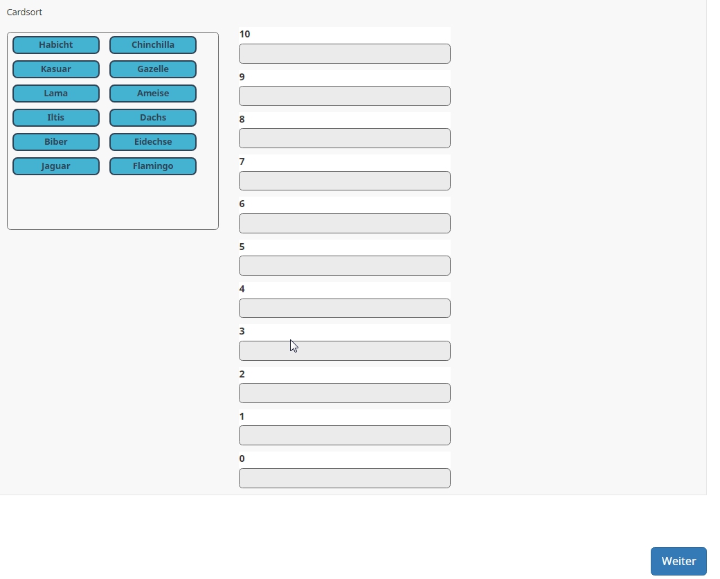 2) Im Idealfall soll die Umfrage auf Handys absolviert werden können. Leider ist die Darstellung auf Handys nicht ansatzweise nutzbar. Gibt es eine Möglichkeit oder Einstellung, die Darstellung auf Handys anzupassen, sollte eines genutzt werden? Hier ist vielleicht nochmal zu betonen, dass wir mit dem Skript „cardsort“ agieren.