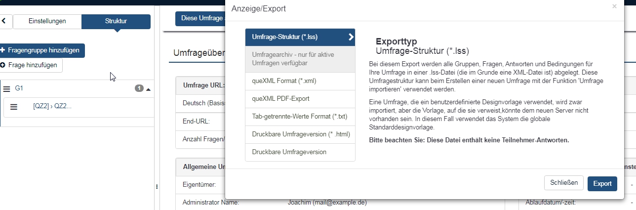 Ich habe eine Umfrage auf deutsch erstellt, in der bei einigen Fragen Bedingungen (mit dem Bedingungsdesigner, da