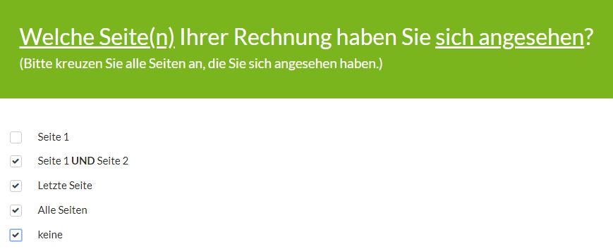 Ah, ja, und auf der letzten Seite steht dann "Herzlichen Glückwunsch zur bestellten Waschmaschine"Denn der Hintergrund ist, dass wir möchten, dass sich die Kunden eigentlich nur intensiv mit der 1. Seite beschäftigen und danach glücklich sind und die Rechnung zur Seite legen