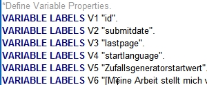 2. VARIABLE LABELS (hier werden die Texte der Fragen diesen Variablen zugeordnet)